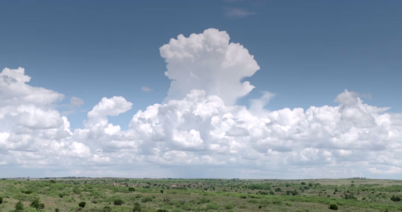 2634270 - Long-duration shot of cumulus clouds building in bright sun over Texas prairie, real-time, 4K