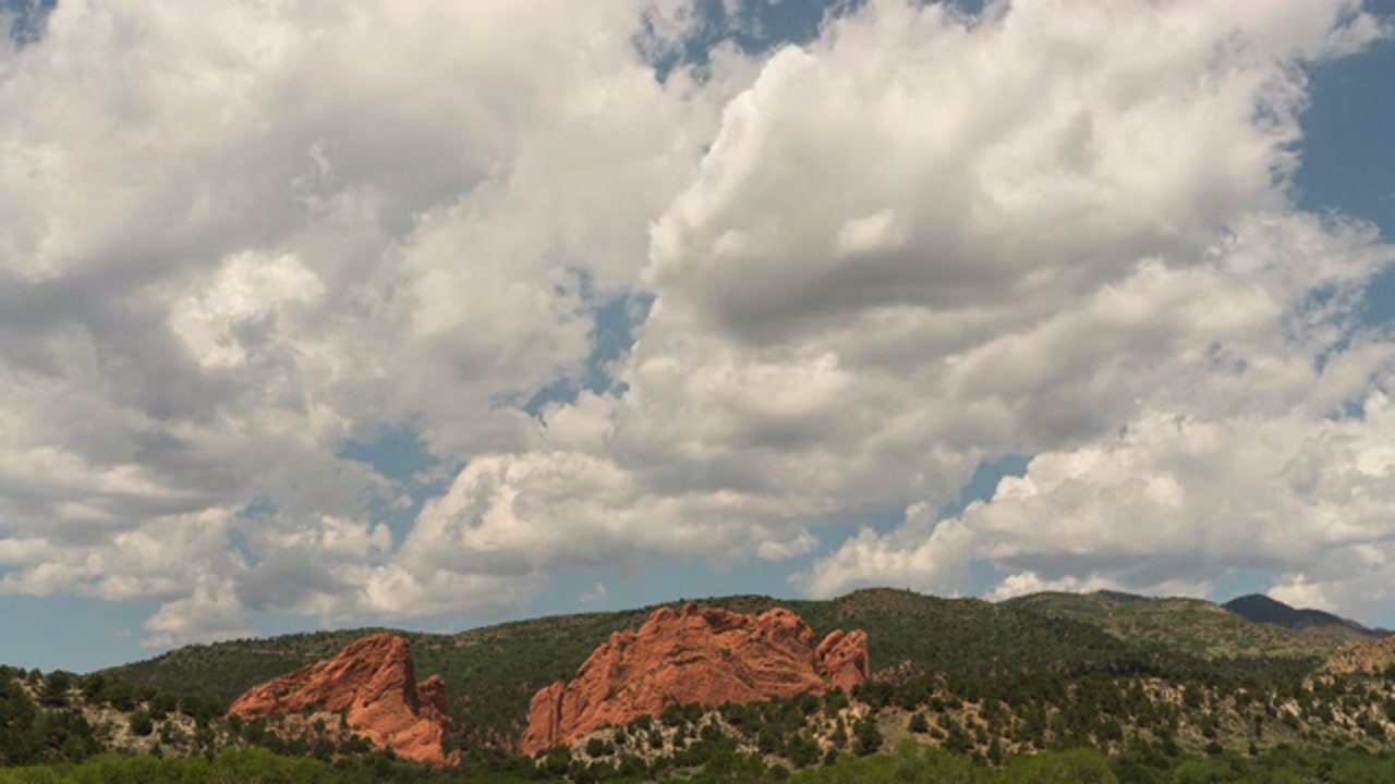 2634271 - Fair weather clouds drift over Garden of the Gods Colorado, summer, time-lapse, 8K