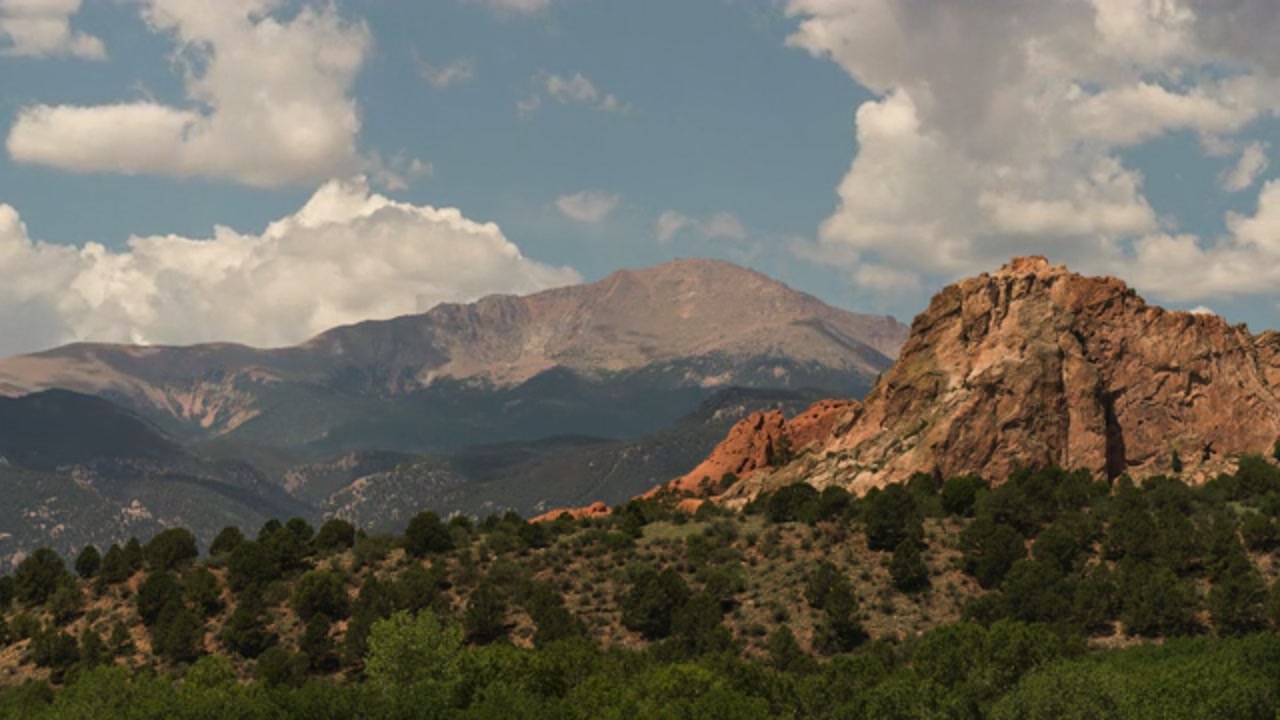 2634272 - Fair weather clouds drift over Pikes Peak, Colorado, summer, time-lapse, 8K