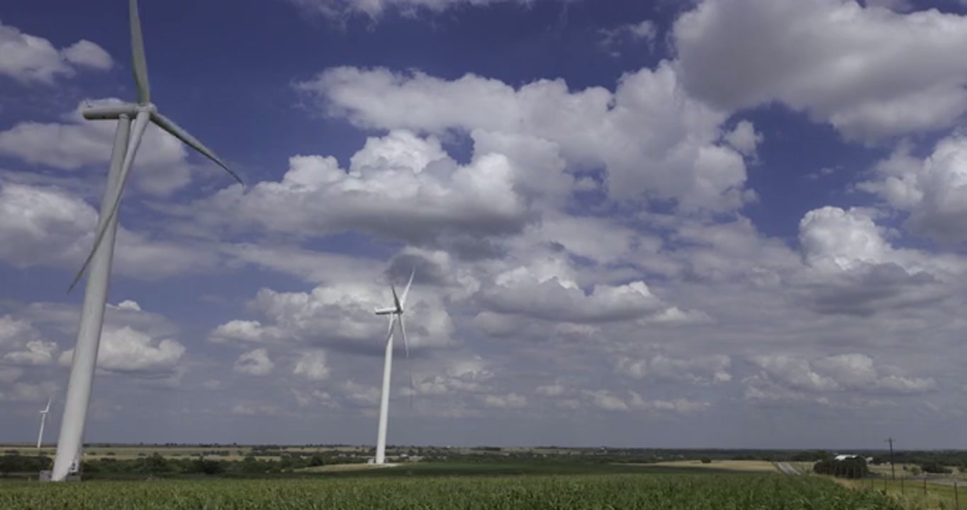 2634273 - Fair weather clouds - cumulus drift over wind farm, time-lapse, 4K from 16K video